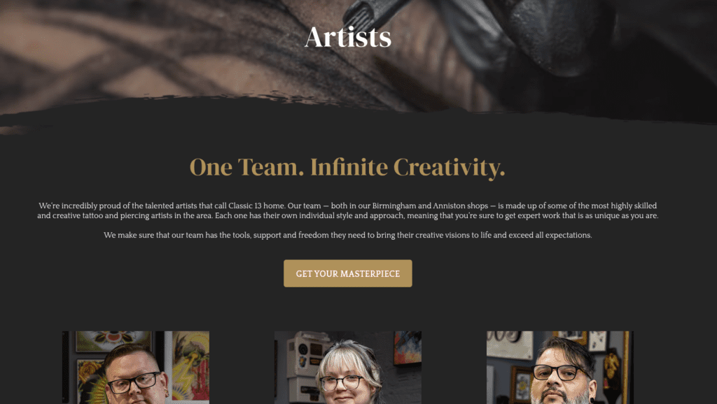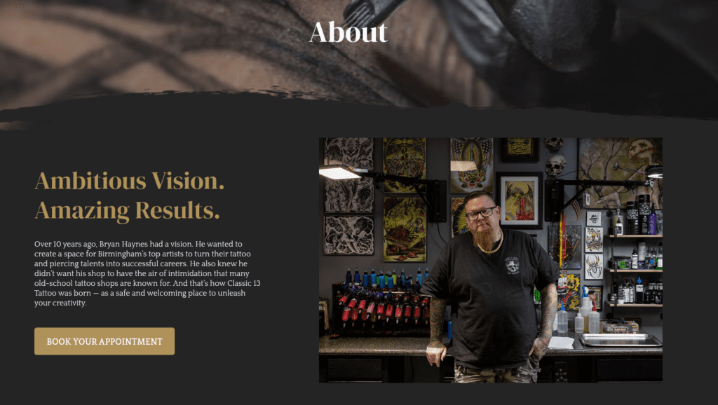 Classic 13 Tattoo needed website copy with a tone that felt cool and welcoming — setting clear expectations while making customers feel safe, seen, and excited to visit.