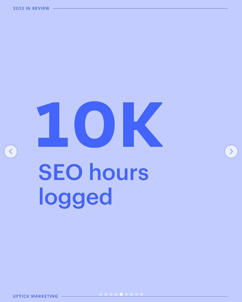 I wanted to create a social media post that celebrated Uptick Marketing‘s wins and showcase the scale of our work in a way that was upbeat, engaging, and true to the brand.
